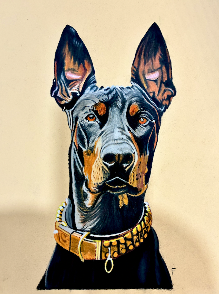 Submit a few clear photos through the inquiry form. Fulton will create a hand-drawn portrait based on your images. Each piece is made individually with care and attention to detail.